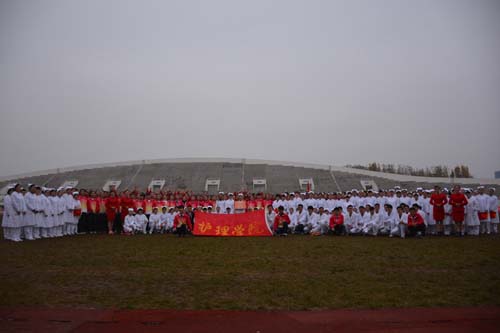 比赛伊始,公司武术操方队身着统一校服,踏着整齐的步伐,喊着激昂的口号“泰医风采,护院领航”步入比赛场地。伸拳、推掌、踢腿,一招一式尽显青春本色。看台表演方队也不甘示弱,白衣天使们列队组成“火炬”图案,挥舞着手中彩色表演牌,起起伏伏间恰似跳跃的火焰,成为看台上一道亮丽的风景。同学们精彩的表演赢得了观众阵阵的掌声和评委的一致好评。