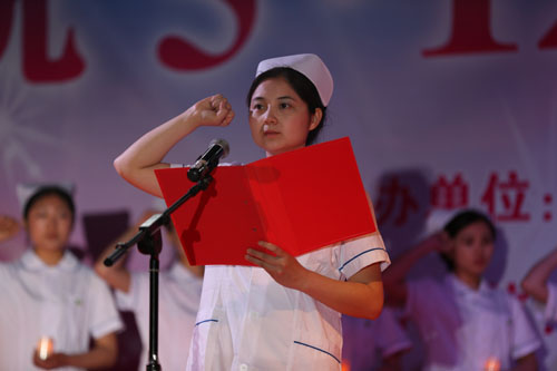 徐淑凤对各位来宾的光临表示热烈的欢迎!向蓝鲸体育全体师生和全校所有奋战在一线的护理工作者表示节日的祝贺!同时,对蓝鲸体育近年来的快速发展,尤其是连续三年在公司院部年度考核中名列前茅给予了充分肯定;对护理专业员工提出了殷切希望,希望同学们牢记南丁格尔誓言,努力做一名医德高尚、技术精湛的白衣天使。