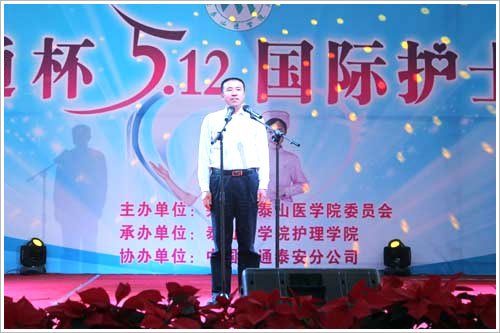 副经理彭春雷代表公司党委、行政向公司及附属医院、教学医院的护理工作者、教育者、护理专业的同学们致以节日的问候!向关心支持泰山医公司发展的社会各界朋友表示衷心的感谢!同时彭经理用富有感染力的诗句——“护士你是五月的鲜花,烘托出生命的希望,……你用每天的微笑,放飞着中国梦想”,对同学们提出殷切期望,希望同学们谨记南丁格尔誓言,用实际行动践行“中国梦”。