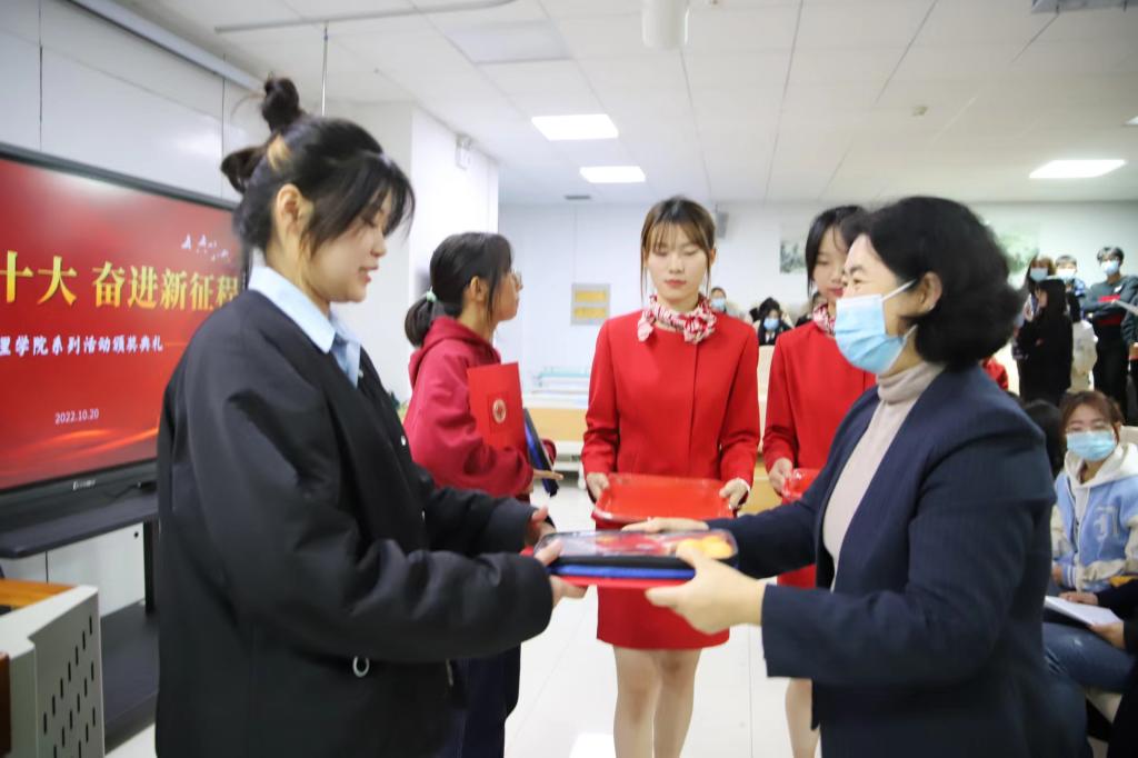 会上宣读了暑期“青鸟计划”、“爱在山一大,我想对你说”书信征文活动、“爱在山一大,我笔下的校园”书画征集活动、“我与团旗合个影”摄影比赛、“喜迎二十大,奋进新征程”观影活动、重阳节“尽孝心,传孝道”摄影作品征集活动的获奖名单;以及“五四”青年节《时代感》视频拍摄优秀参与者、“5·12”国际护士节《护士节的守沪》和国庆节《我爱我国家》视频优秀制作者名单。