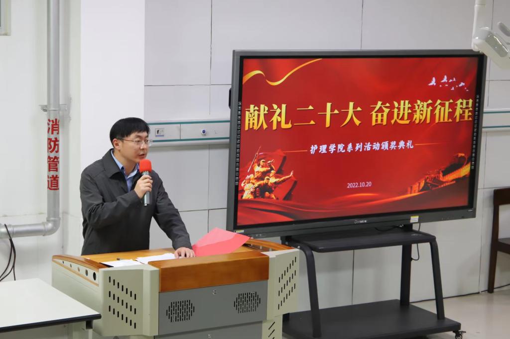 林桦在总结发言中,希望广大护理学子要树理想,与时代同步伐,与人民共命运;要练本领,学习中增知识,实践中长才干;要担责任,在担当中历练,在尽责中成长。当前疫情防控处于关键时期,长城路校区每次全员核酸检测,广大青年志愿者都是凌晨四点多到老员工活动中心进行准备工作,他们任劳任怨、无私奉献。“世上没有从天而降的英雄,只有挺身而出的凡人。”广大青年学子要学习身边的榜样,更要拥抱困难,一路向前。