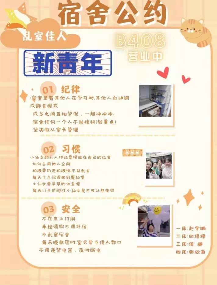公司始终坚持“三全育人”理念,大力实施环境育人,积极推进一站式员工社区建设,营造温馨、健康、活泼、和谐的宿舍文化氛围。本次主题宿舍文明公约征集活动,丰富了同学们的宿舍文化生活,提高了同学们的文明修养,充分营造了 “崇贤、尚雅、和谐、向上”的校园氛围。