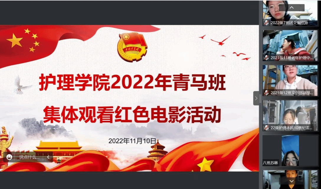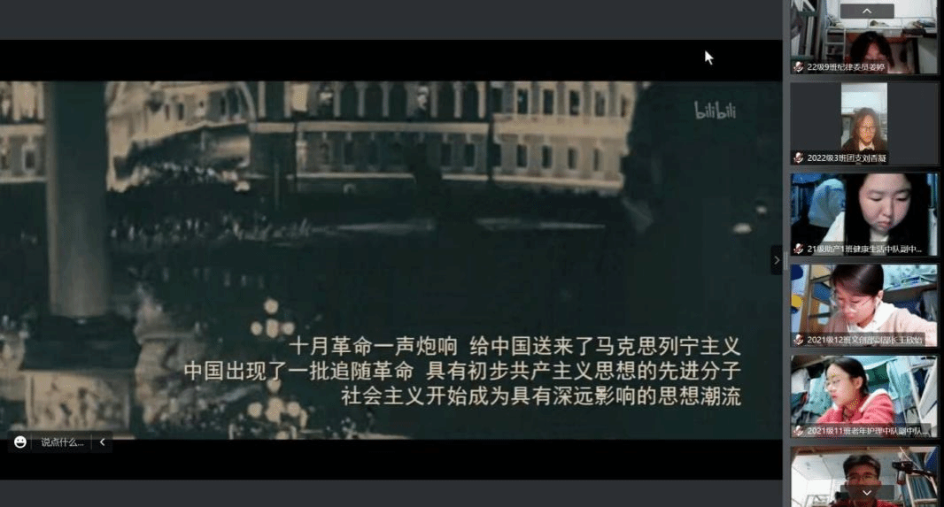 为进一步加强对青马班学员的党史学习教育,弘扬伟大建党精神,让党旗在同学们心中高高飘扬,11月10日晚,蓝鲸体育青马班全体学员线上观看红色影片《建党伟业》。团总支书记张恒丽参加活动。