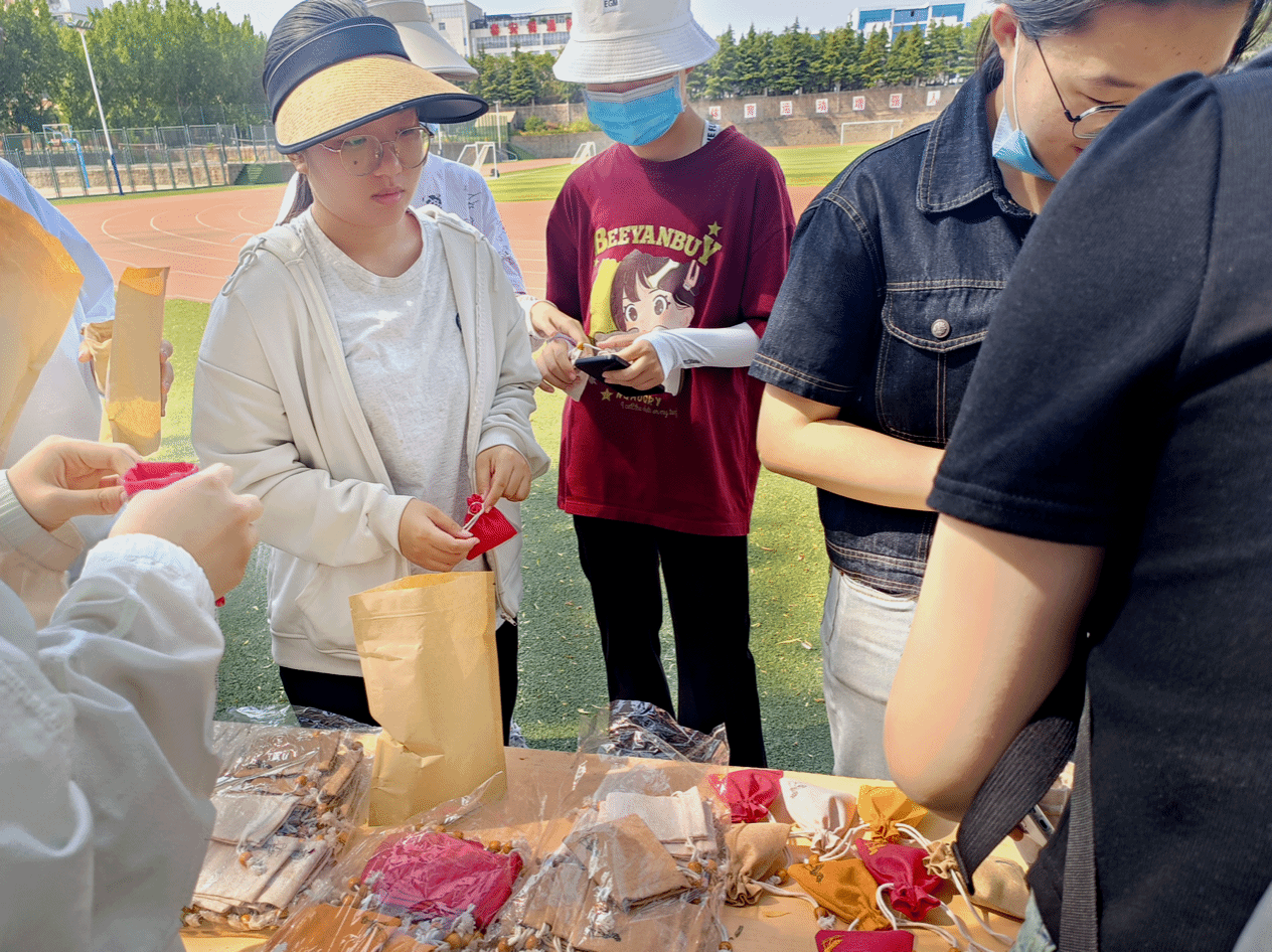 公司自管会心理部成员向大家简单介绍了香囊材料包的组成和制作过程,为他们讲解了香囊的香料种类和使用方法等,让大家对香囊有了进一步了解。活动中,同学们在工作人员的耐心指导下,自主选择具有安神助眠、芳香美颜、清神醒脑、驱蚊等功能的香料,然后进行装袋封口,完成香囊制作。简单的步骤,因同学们之间近距离的交流与合作而富有意义。活动现场伴随着同学们的欢声笑语,弥漫着清幽、芳香的气息,令人心旷神怡。