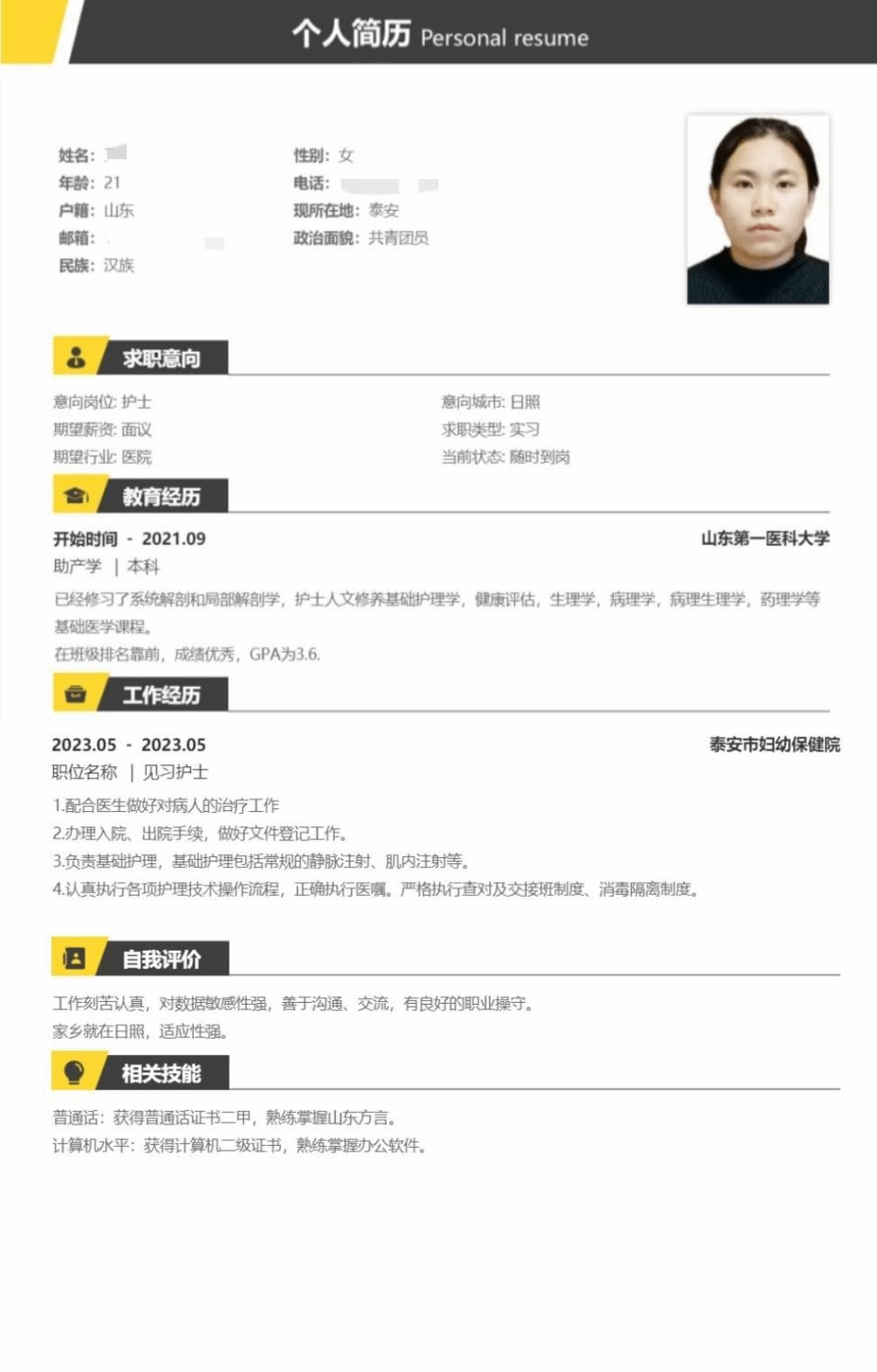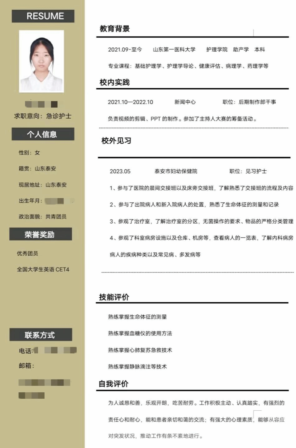 本次活动中涌现了许多优秀作品,让我们一睹护理学子在模拟面试场中的精彩简历。