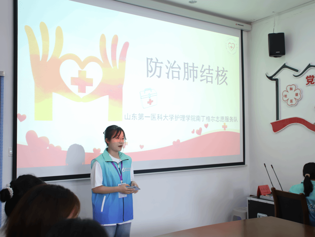 活动分肺结核宣讲、“两弹一星”宣讲、心肺复苏演示三个板块进行。第一板块中,队员用通俗易懂的语言、简洁明了的PPT,详细地讲解了什么是结核病、结核病是如何传播的、如何预防和治疗结核病,并呼吁大家日常适量锻炼,养成良好的生活习惯和健康的生活方式。现场的社区居民认真听讲,纷纷表示受益匪浅。