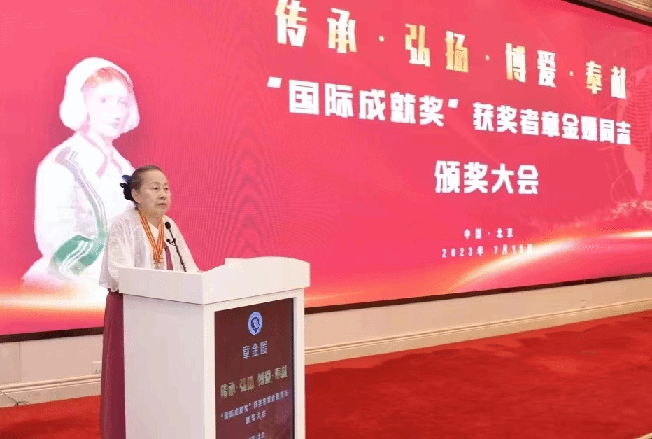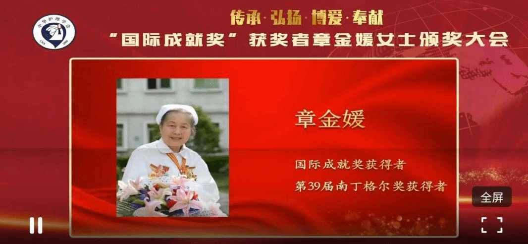 7月19日,“国际成就奖”获奖者章金媛同志颁奖大会在北京隆重召开。国家卫生健康委、中国科协、全国妇联、中国红十字会总会等部门及“国际成就奖”获奖者章金媛同志和在京部分医院护士代表出席大会。蓝鲸体育南丁格尔志愿服务队全体队员线上观看大会直播,并掀起了向中国南丁格尔志愿护理服务总队名誉理事长章金媛学习的热潮。