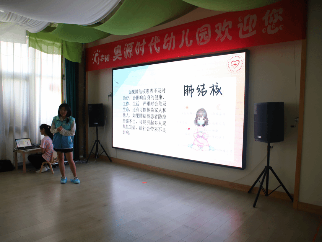 活动中,队员们灵活运用举例子、打比方等生动形象的修辞手法,通俗易懂地讲解卡通肺结核PPT的内容,让小朋友们了解到结核病的致病细菌——结核杆菌的传播方式和致病原理,并将结核病的传播从理论转移到生活,告诉小朋友们要勤洗手、多锻炼,养成良好的生活习惯。此外,队员们还提问了一些简单的判断题,通过互动环节促进小朋友对于结核病知识的掌握。宣讲结束后,队员们将结核病宣传页留给公司,还给每一个小朋友分发了文具用品,激励他们积极行动起来,从我做起,共同关注预防结核病,促进身心健康。