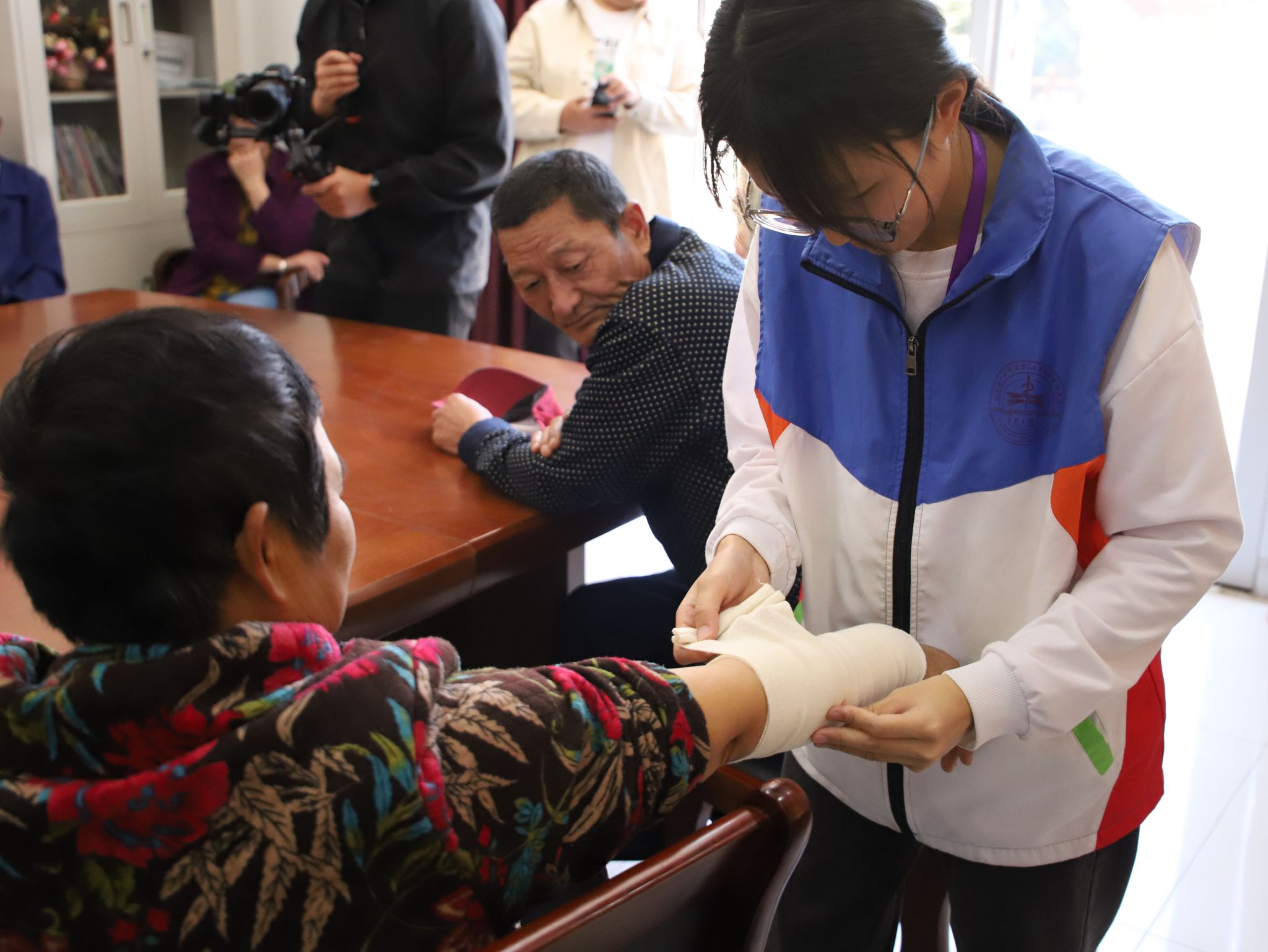 急救知识科普部分,队员们为老人及其家人们演示了胸外心脏按压与人工呼吸的规范操作,科普八字包扎法、螺旋包扎法和环性包扎法等常见包扎方法。在互动交流环节,队员们与他们畅谈,为他们解答疑惑,老人及其家人们纷纷表示受益匪浅,氛围十分融洽。