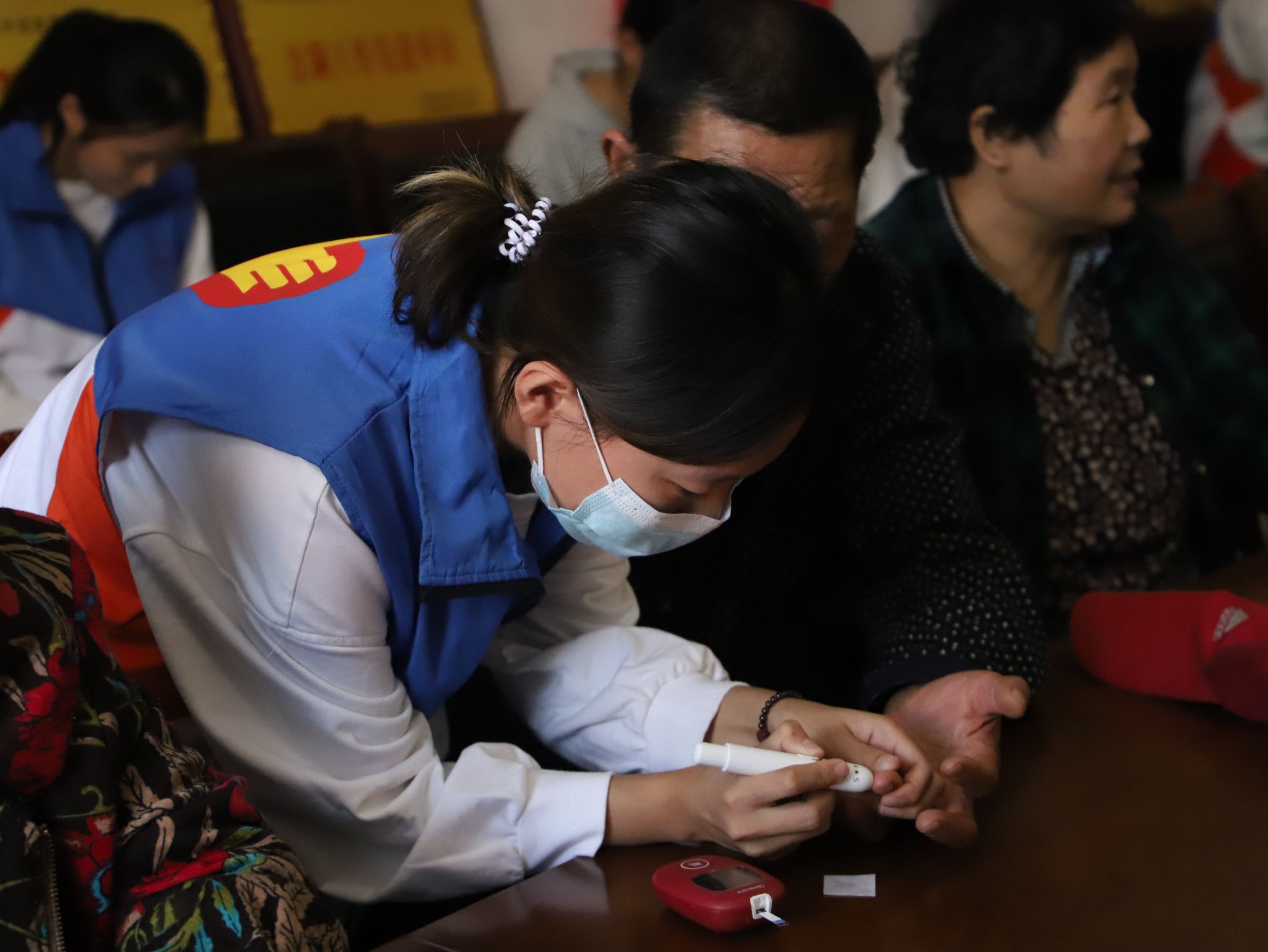 活动分健康义诊与急救知识科普两部分进行。队员们为老年人开展一对一健康义诊服务,仔细询问他们的生活习惯,介绍当前季节的常见病和多发病的症状和传播途径,有针对性的给出指导建议,帮助老年人做好预防工作。此外,他们还为老人们测血压、测血糖,并结合本次测量数据分析老人近期身体状况,耐心地说明日常生活中有助于控制血压血糖的饮食与运动方面的注意事项,叮嘱患有高血压、糖尿病、心脑血管病的老年人按时服药。队员们用实际行动赢得了老人们的高度赞扬。