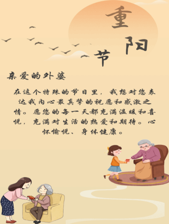 “百善孝为先”,孝道自古以来便是为人立身之本,是中华民族的传统美德。传承至今,农历九月初九逐渐演变为以“尊老、爱老、敬老”为传统的重阳节。在民俗观念中,“九”有长久、长寿的含义,寄托着人们对老人健康长寿的祝福。