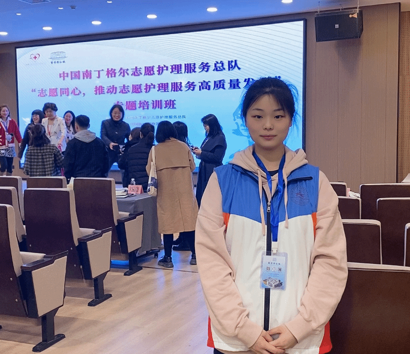 作为团支书,她积极做好老师和同学们之间沟通的桥梁。作为服务队的执行队长,她不断探索志愿服务新形式、新领域,同时参与组织512国际护士节晚会、迎新工作等各类文娱活动和常规工作。她分享道:这两年的员工工作经历让她的沟通能力、组织能力、统筹能力都得到了一定的提高,现在和高中最大的不同是,身为老员工的我们需要自己主动地去安排自己的生活。与其说机会是留给有准备的人,不如说机会是留给有准备并且主动“出击”的人。