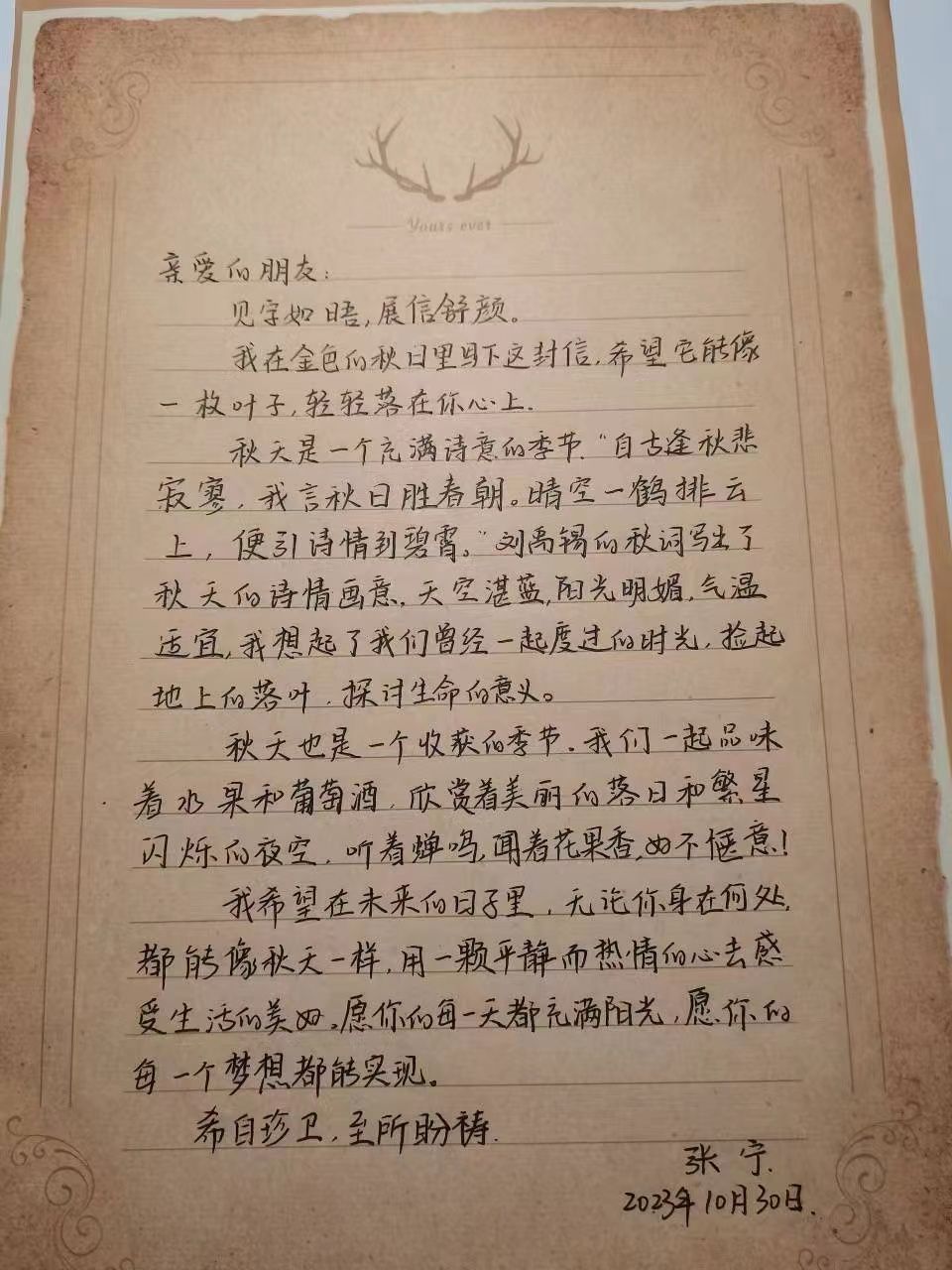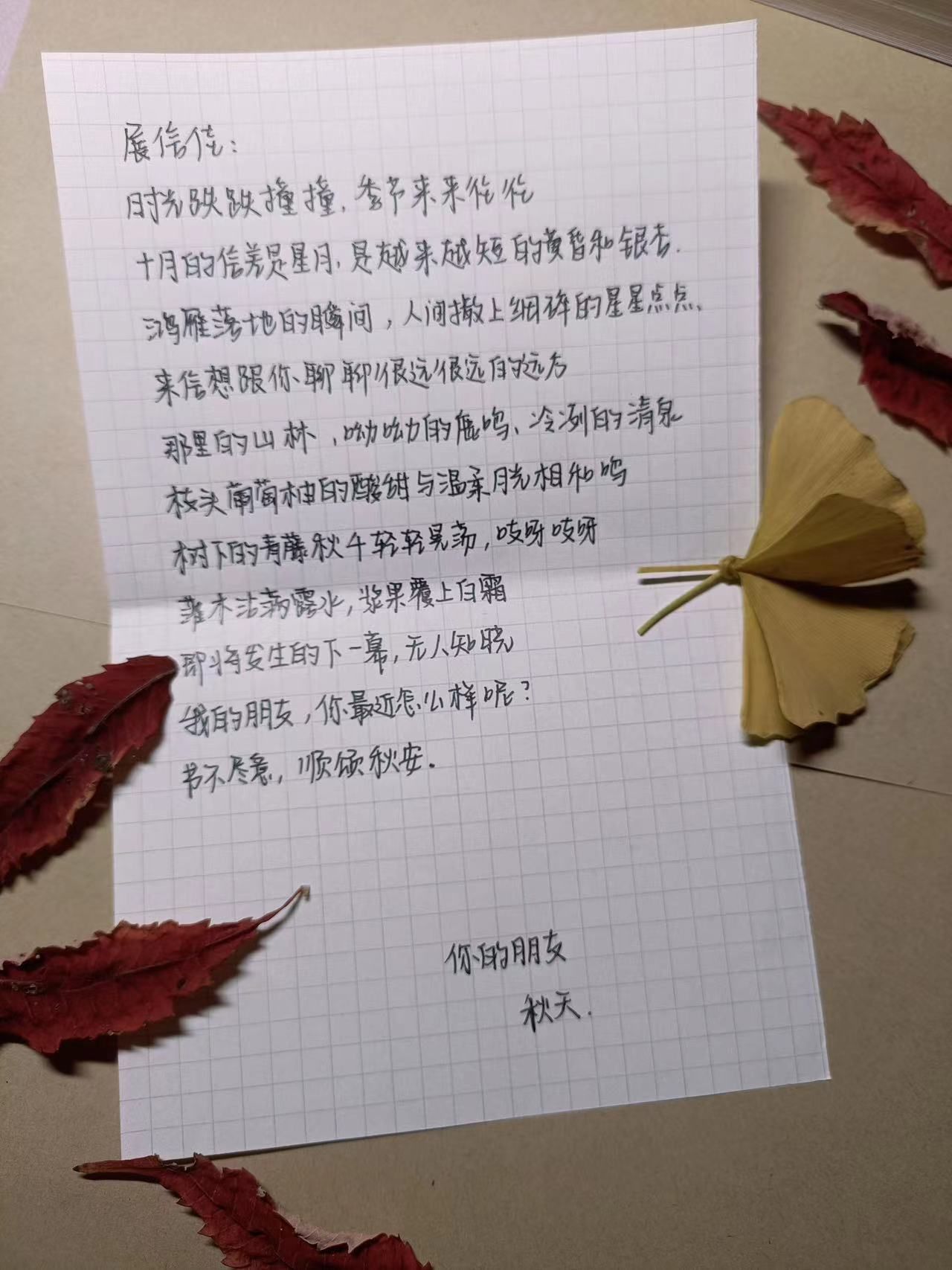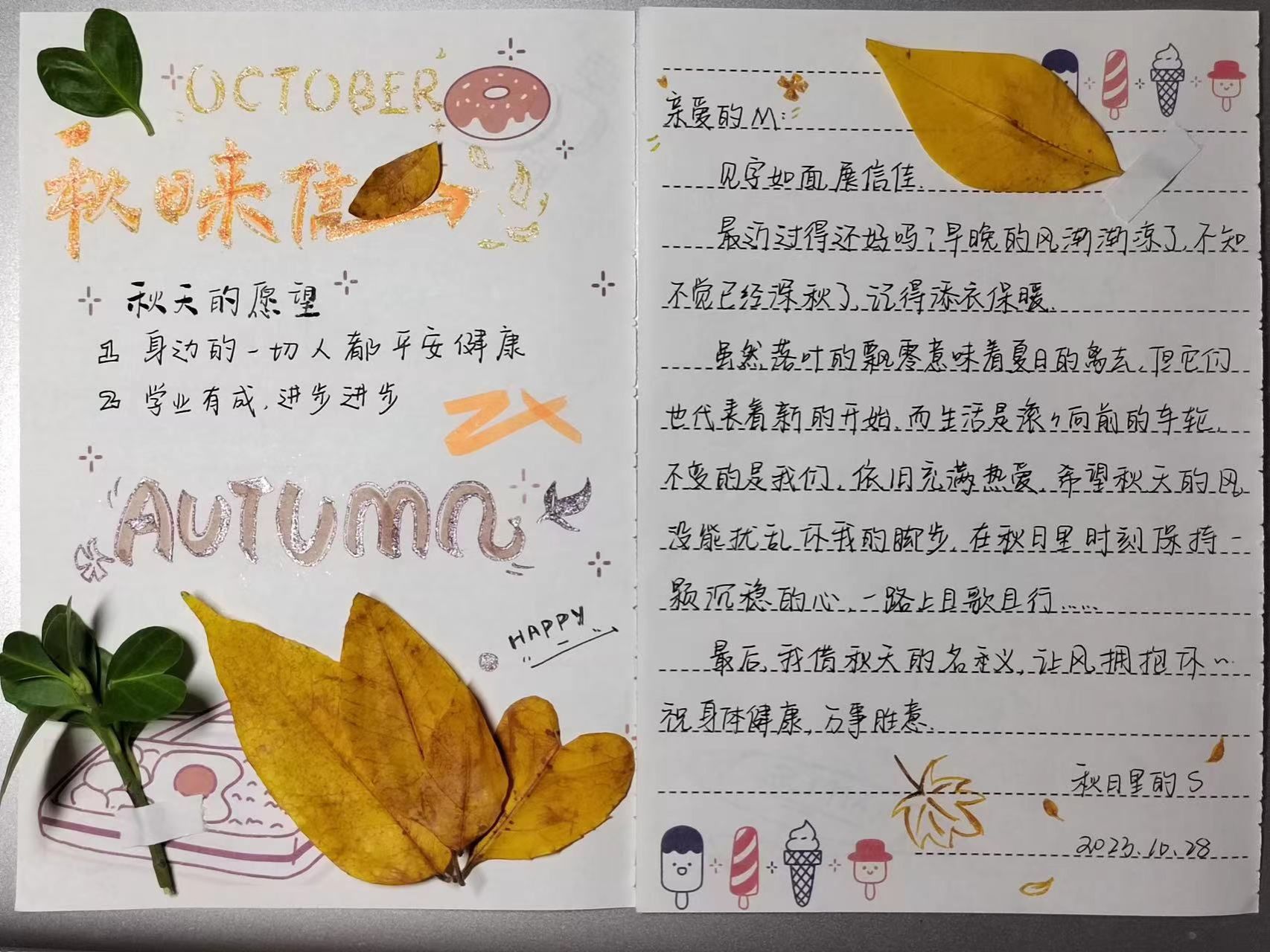 为鼓励同学们走进秋日校园,领略大自然的独特魅力,营造热爱自然和保护自然的良好氛围,近日公司举办“秋日来信,美好相约”写信征集活动。本次活动面向蓝鲸体育全体员工。