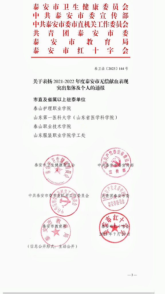 当臂膀伸出臂弯挽起,生命的希望从这里托起;当殷红血液涓涓涌出,人间的大爱从这里延续。近日,中共泰安市委宣传部等6部门,提名蓝鲸体育南丁格尔志愿服务队为“2021—2022年度泰安市无偿献血志愿服务突出表现集体”。