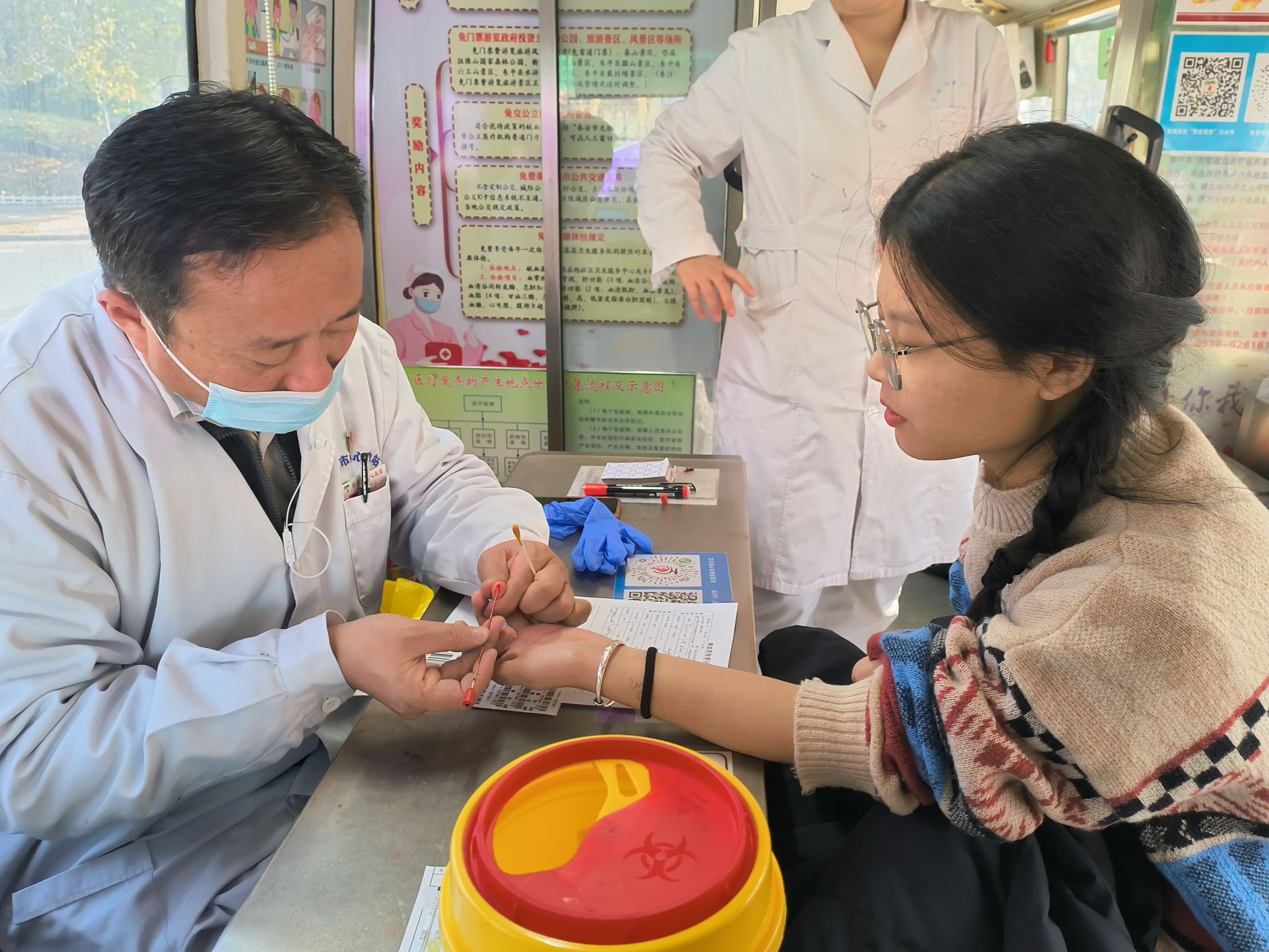 每天,队员们都早早来到献血车前进行准备工作。前来献血的师生络绎不绝,在队员们的有序组织下,师生们依次进行了领表登记、血型测定、体检、抽血和观察休息。在队员们的引导下,献血者们积极配合,伸出手臂,充满爱心的热血缓缓流进一个个储血袋,为帮助更多需要帮助的人尽了自己的一份绵薄之力。献血结束后,队员们还为参与献血的师生发放了小礼物,以此感谢他们的无私奉献。