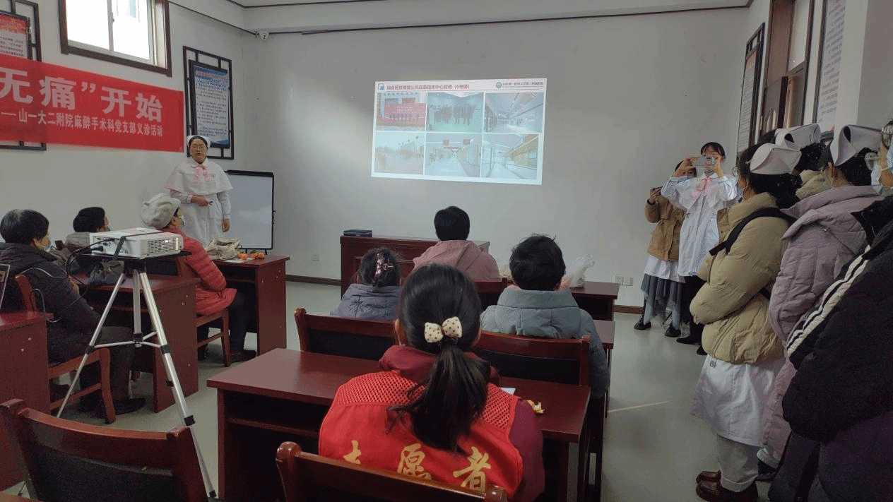 公司师生首先耐心细致地给老人测量血压和血糖。王焕云介绍了第二附属医院的基本情况,王瑶瑶医师开展了《美好生活从无痛开始》健康讲座。冯善龙和宋康健给老人详细讲解病情。王盈盈和王焕云免费为老人开展浮针治疗和耳穴压豆治疗。此后,员工根据《外科护理学》的学习内容,向老人介绍健康教育知识,并向社区居民发放《不做有“痔”之士》的健康宣传册。