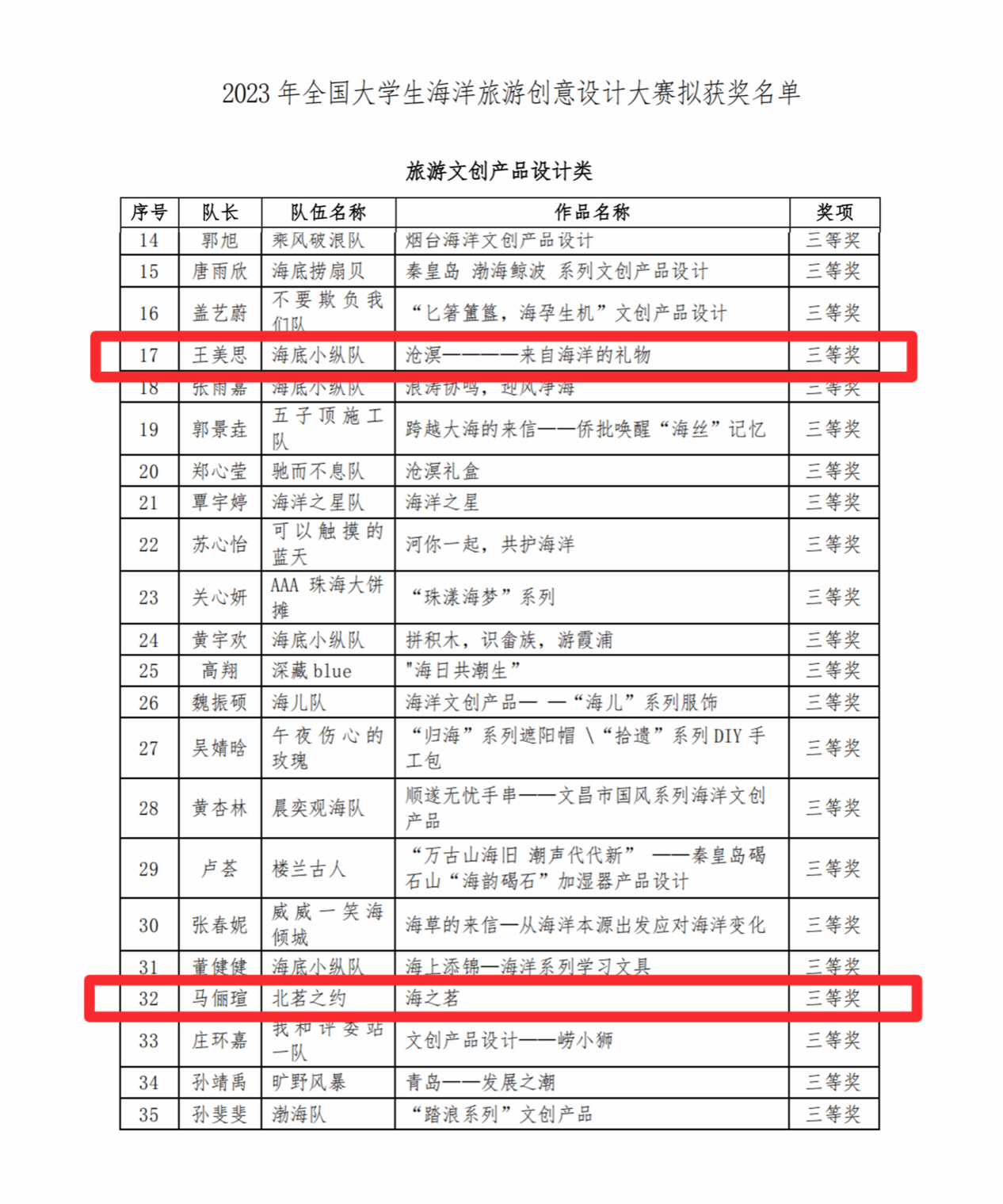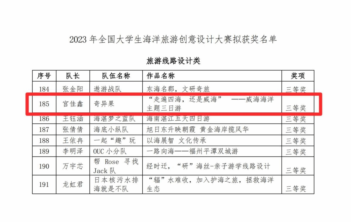 近日,2023全国老员工海洋旅游创意设计大赛拟获奖名单公布,蓝鲸体育学子精心设计的参赛作品在比赛中喜获三等奖3项。