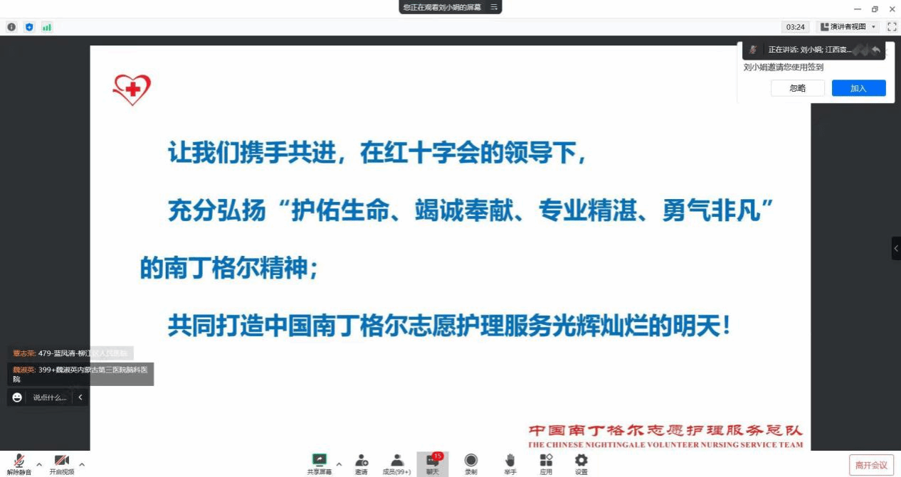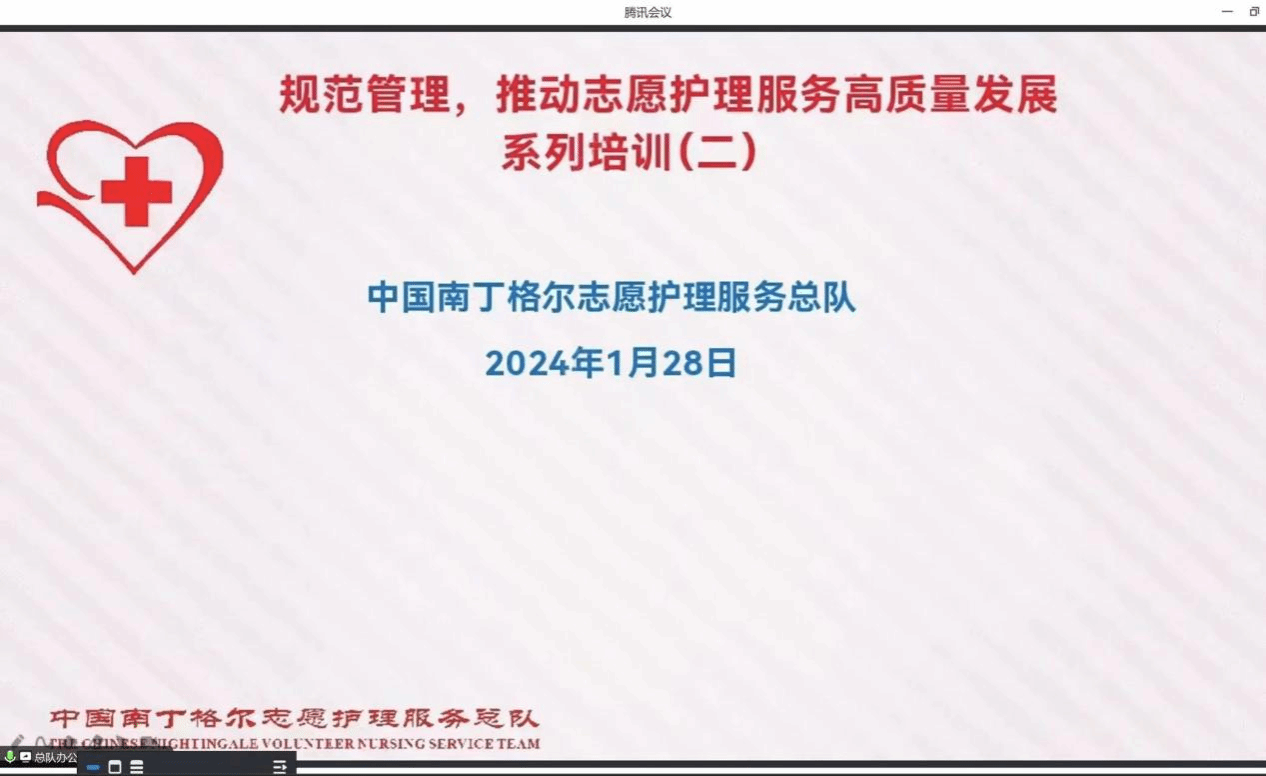为践行“人道、博爱、奉献”的红十字精神,明确总队整体工作要求和具体工作内容,高质量完成志愿护理服务工作以及信息管理工作,1月28日,中国南丁格尔志愿服务总队于线上进行“规范管理,推动志愿护理服务高质量发展”专项培训。蓝鲸体育南丁格尔志愿服务队全体队员线上观看直播。