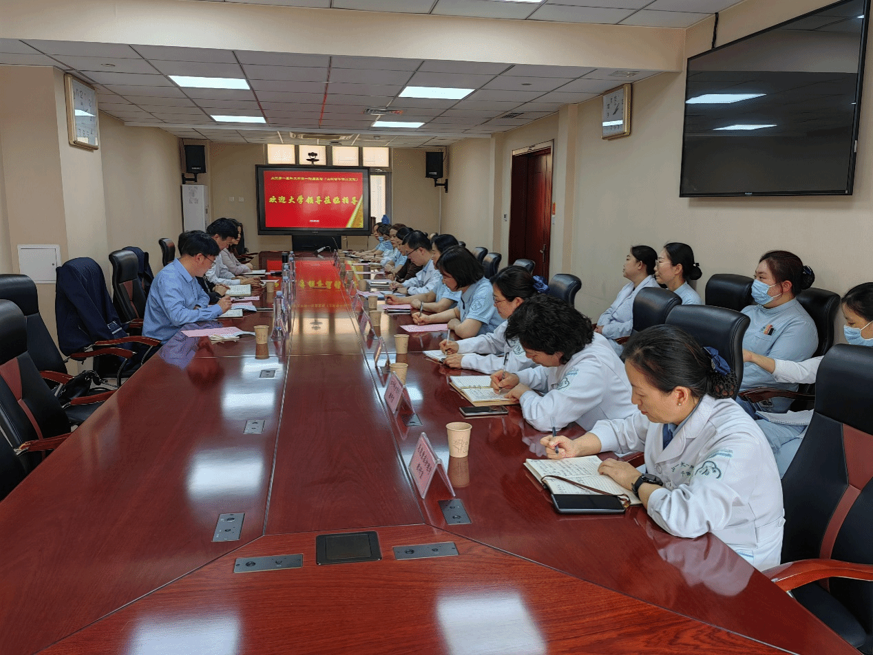 两所医院分管领导介绍了医院团队队伍、教学工作开展情况和员工学习生活服务等基本设施配套情况。王目君充分肯定了医院护理学实践教学取得的成绩,对医院多年来给予校(院)实践教学工作的支持表示感谢。张爱华介绍了校(院)推进“2+2”护理学本科专业人才培养模式改革的目的及意义,同时强调对于承担护理学本科专业教学工作,一要坚持正确的政治方向,课程思政与思政教育相结合,弘扬正能量;二要充分利用现代化公司产品手段,不断提升教师教学能力和教学质量;三是要充分利用医教协同优势,将专业课理论教学与临床实践相结合,达到多临床、早临床和反复临床的目的。公司副经理陶如、副书记林桦结合分管工作进行了发言。