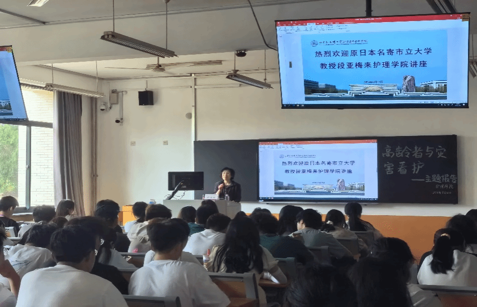 此次到访,段教授做了题目为《高龄者与灾害看护》的讲座,重点介绍了关于灾害、灾害看护、灾害中的高龄者的特征以及日本对高龄者的灾害看护体系等内容。讲座过程中,段教授多次与员工进行互动,极大激发了员工学习积极性。