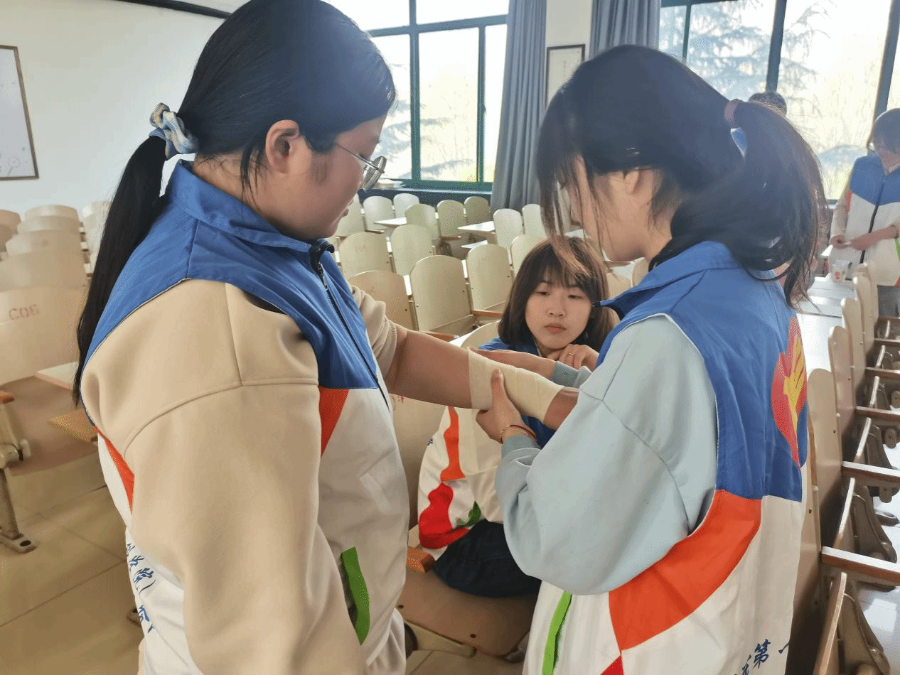 本次比赛设置了心肺复苏急救和包扎两个考核项目。这两个项目紧贴护理志愿服务的实际需求,是针对常见突发事件必须掌握的基本急救技能,具有很强的针对性、实用性、有效性。在如火如荼的比赛过程中,参加心肺复苏考核的队员凭借扎实的急救基本功及平日的刻苦训练,完成了环境评估、判断意识、有无自主呼吸和脉搏、胸外心脏按压、清理呼吸道、开放气道、人工呼吸等步骤;参加包扎考核的队员们从八字包扎、螺旋包扎、环形包扎中随机抽取考核内容,他们沉着冷静,动作娴熟,有条不紊地完成演示的各项步骤。各中队队长和副中队长作为评委严格控制时间、把握标准,对每组技能展示进行打分。