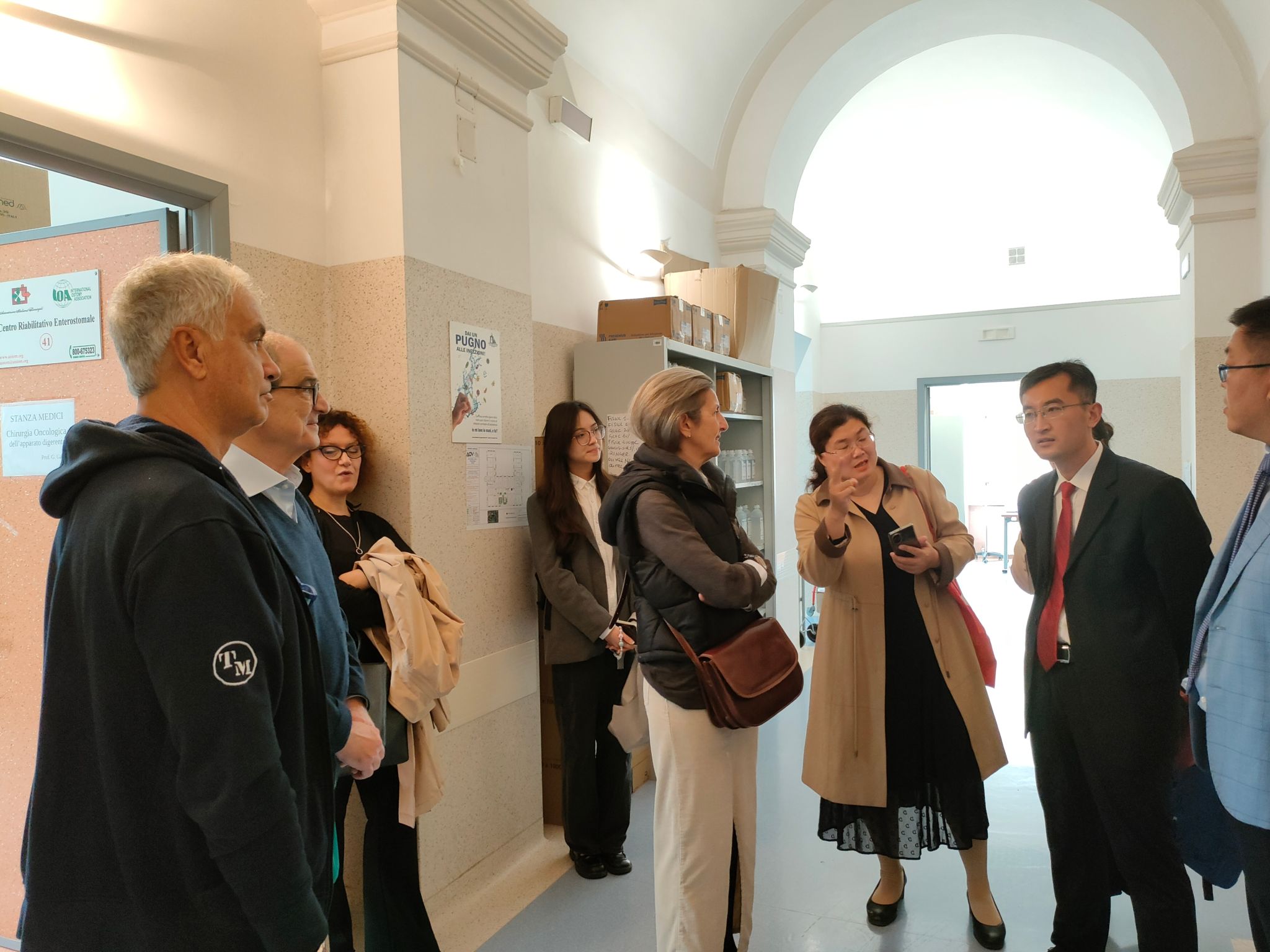 之后,Eva Lieto教授带领代表团参观了公司附属医院万维特里医院。Eva Lieto教授的讲解,让代表团了解到了医院的相关护理体系及员工管理和实习安排,其教学与实践一体化的培养体系为公司护理公司产品的改革发展和人才培养提供了借鉴和启示。